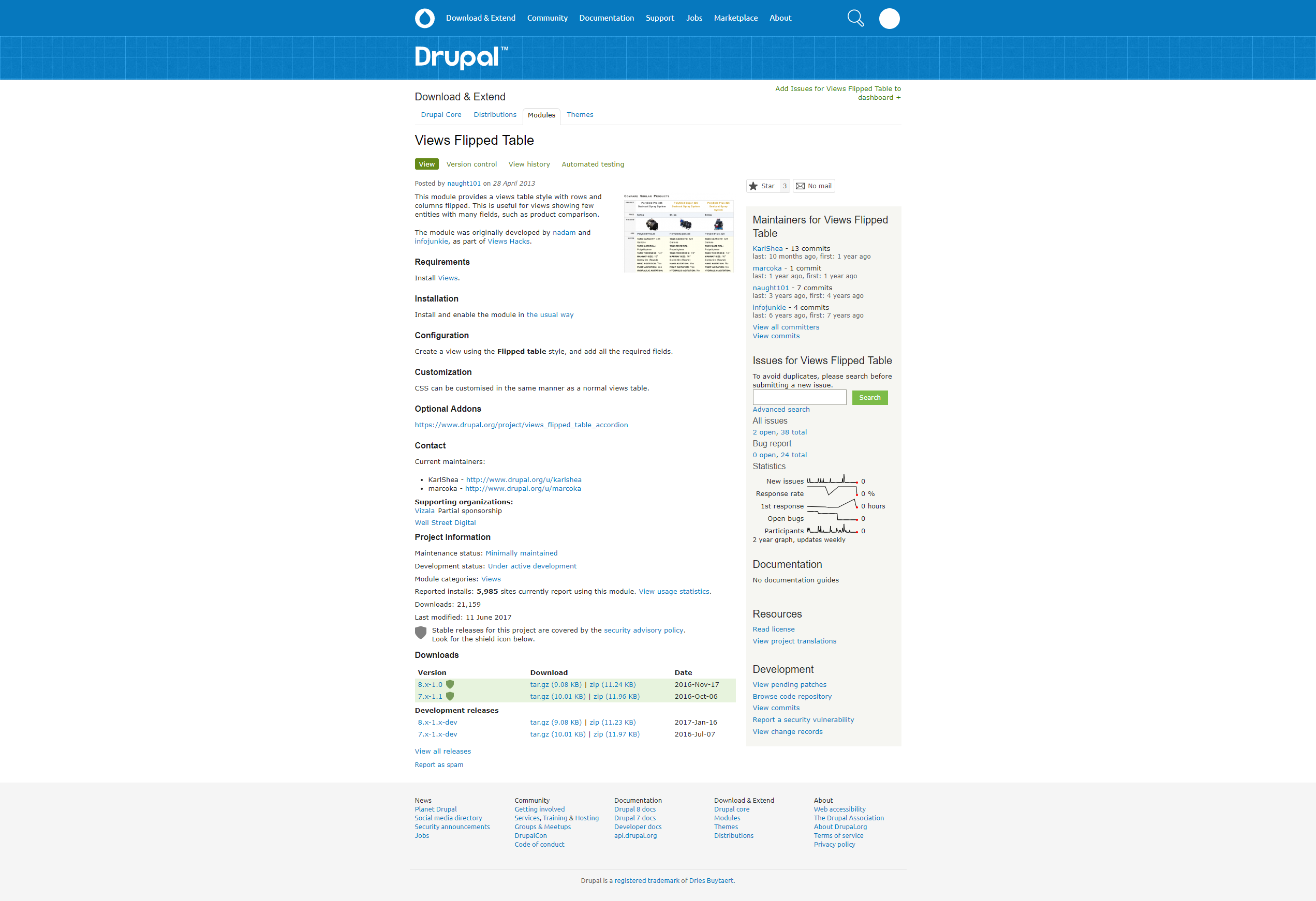 Aug042017 1min read A- A+read facebook twitter email print By admin Views Flipped Table ModuleThis module now has a release available for Drupal 8.Log in or register to post comments