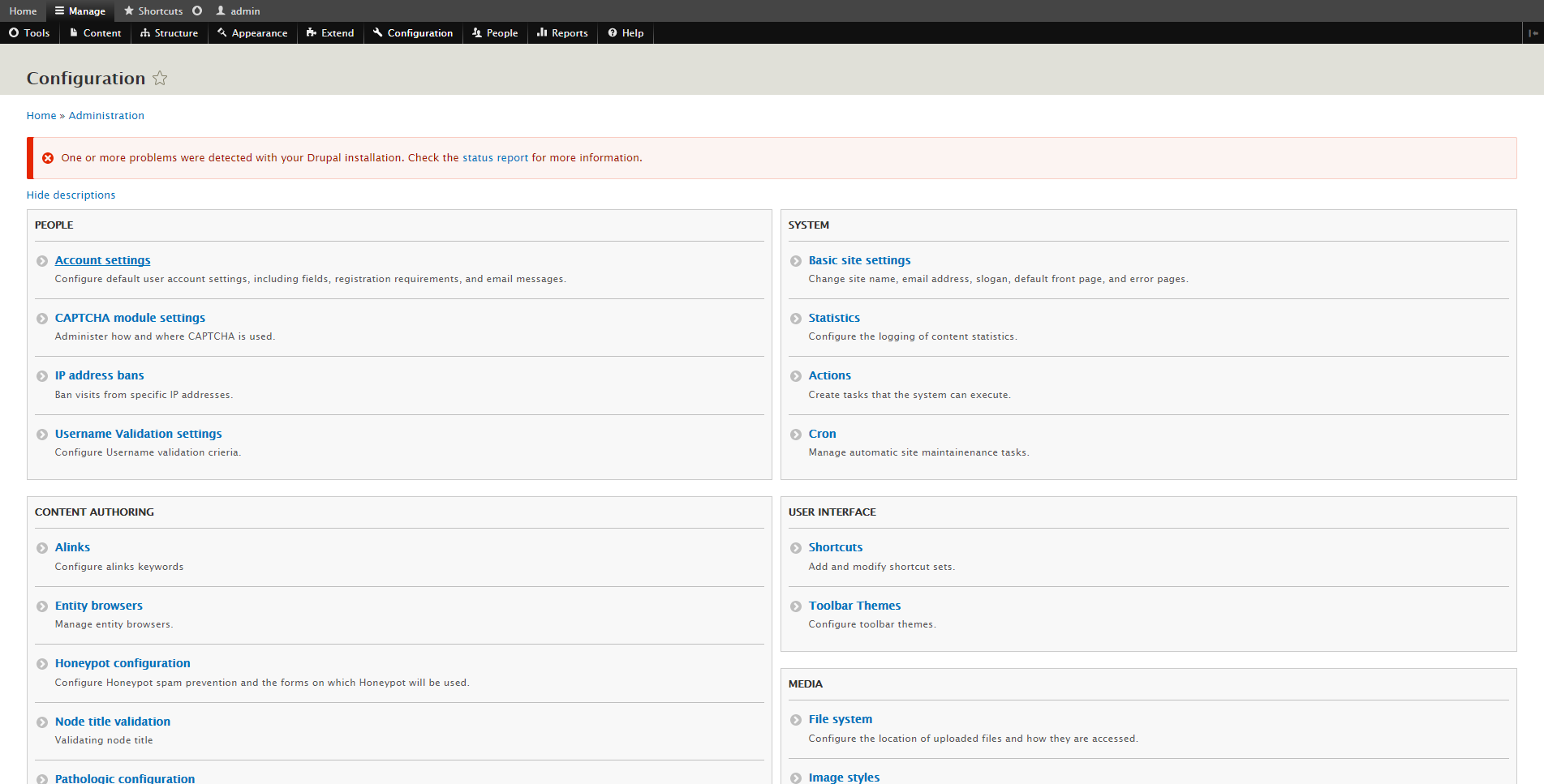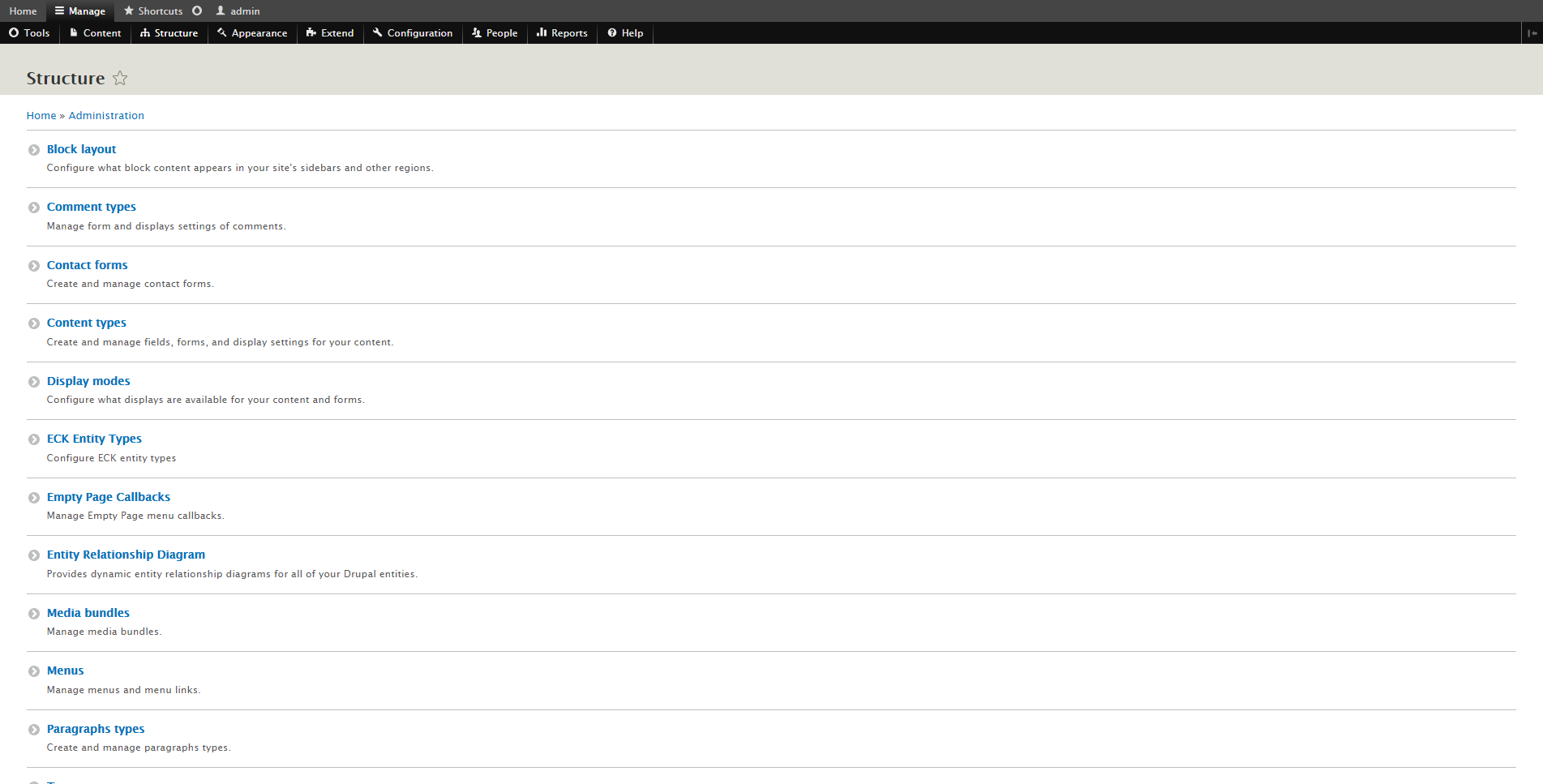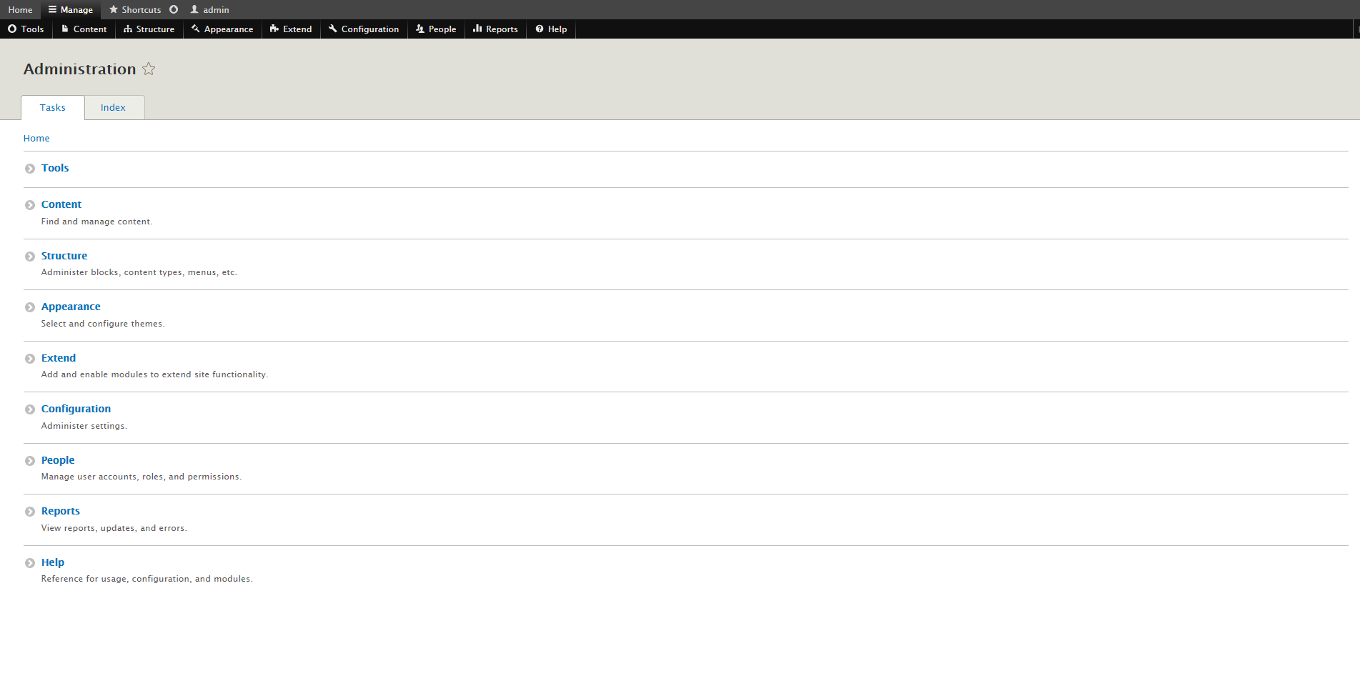 • Drupal 8 Admin Pages Index Page