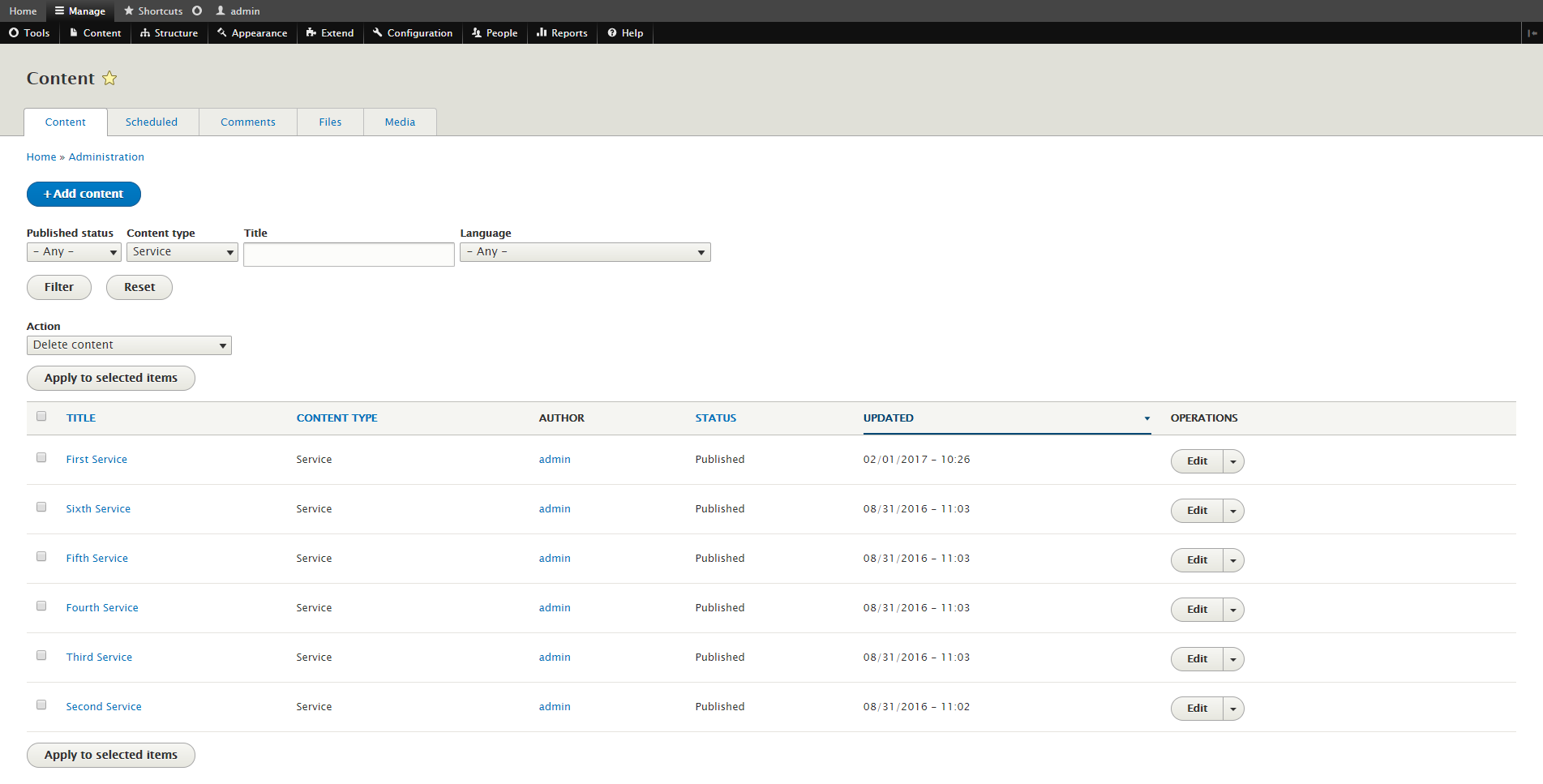 • Drupal 8 Admin Pages Content Listing Page