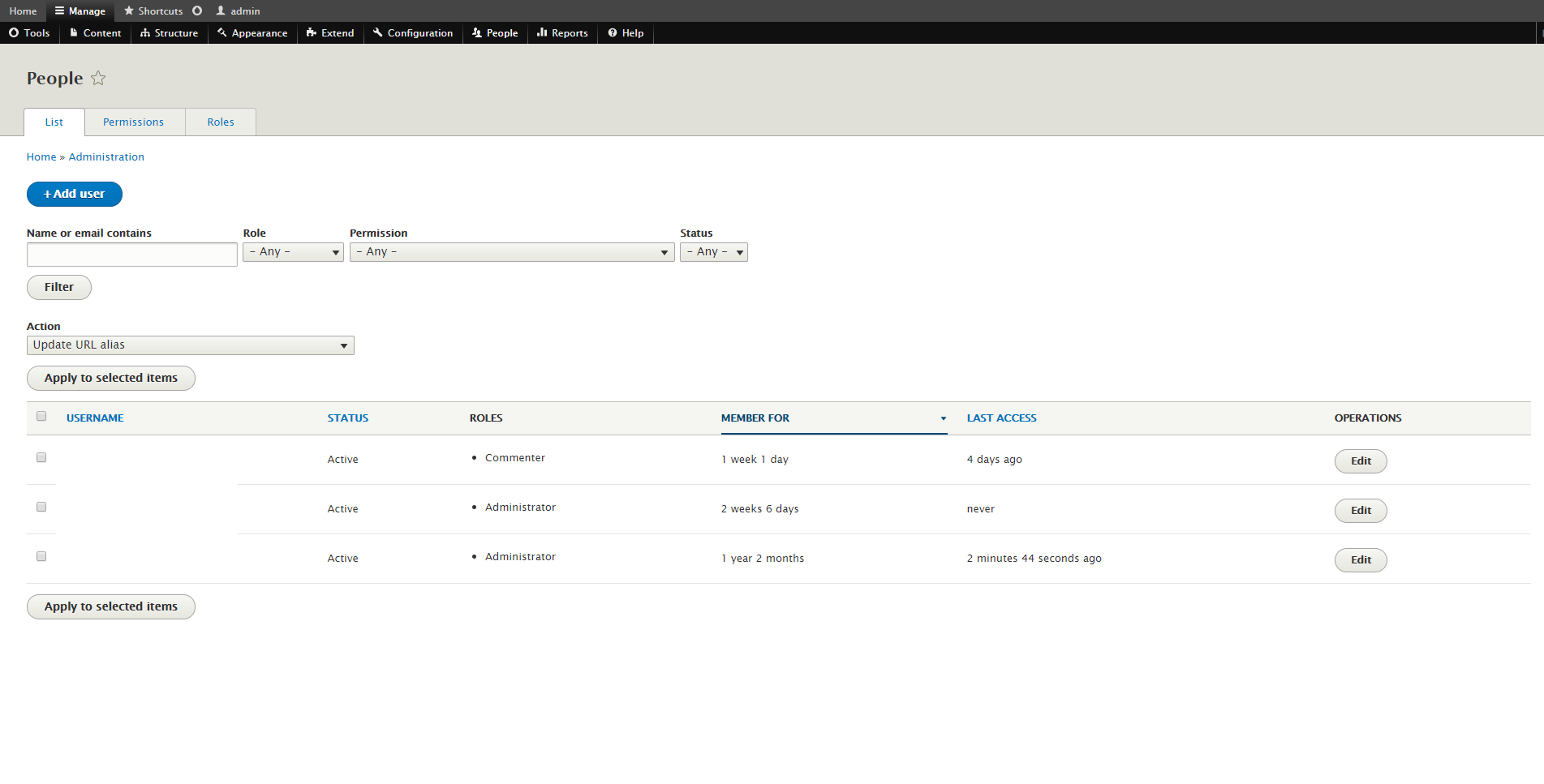 • Drupal 8 Admin Pages People (User List) Page