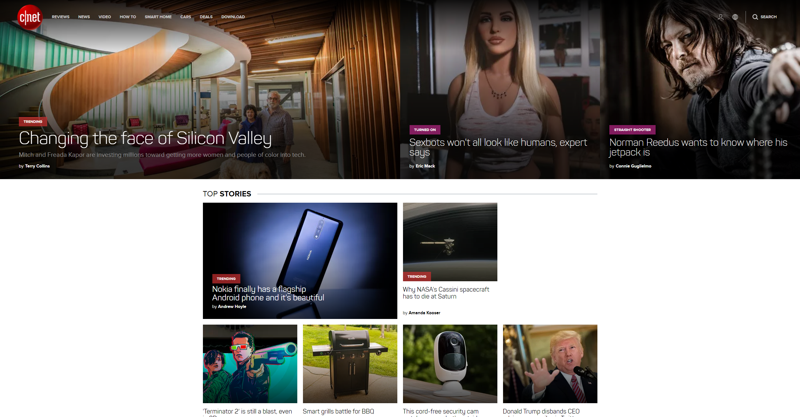 A general audience technology information website that uses contemporary responsive styling with full image background blocks and resizing image enhanced block regions.
