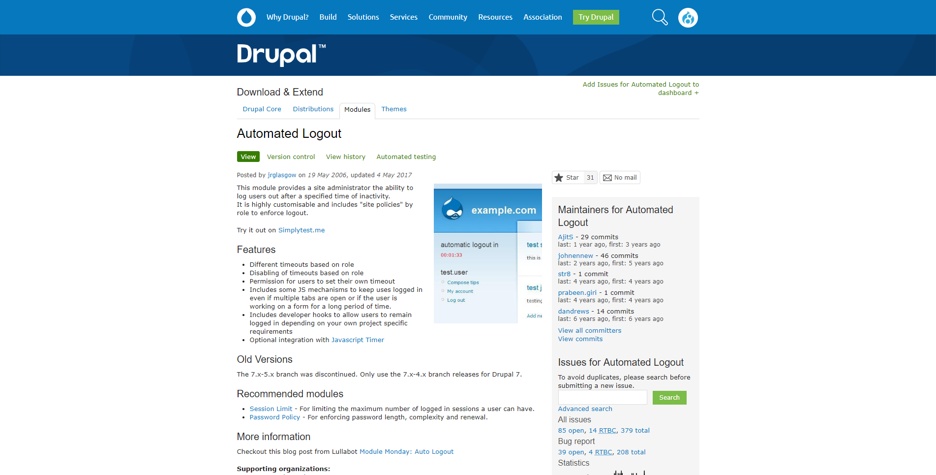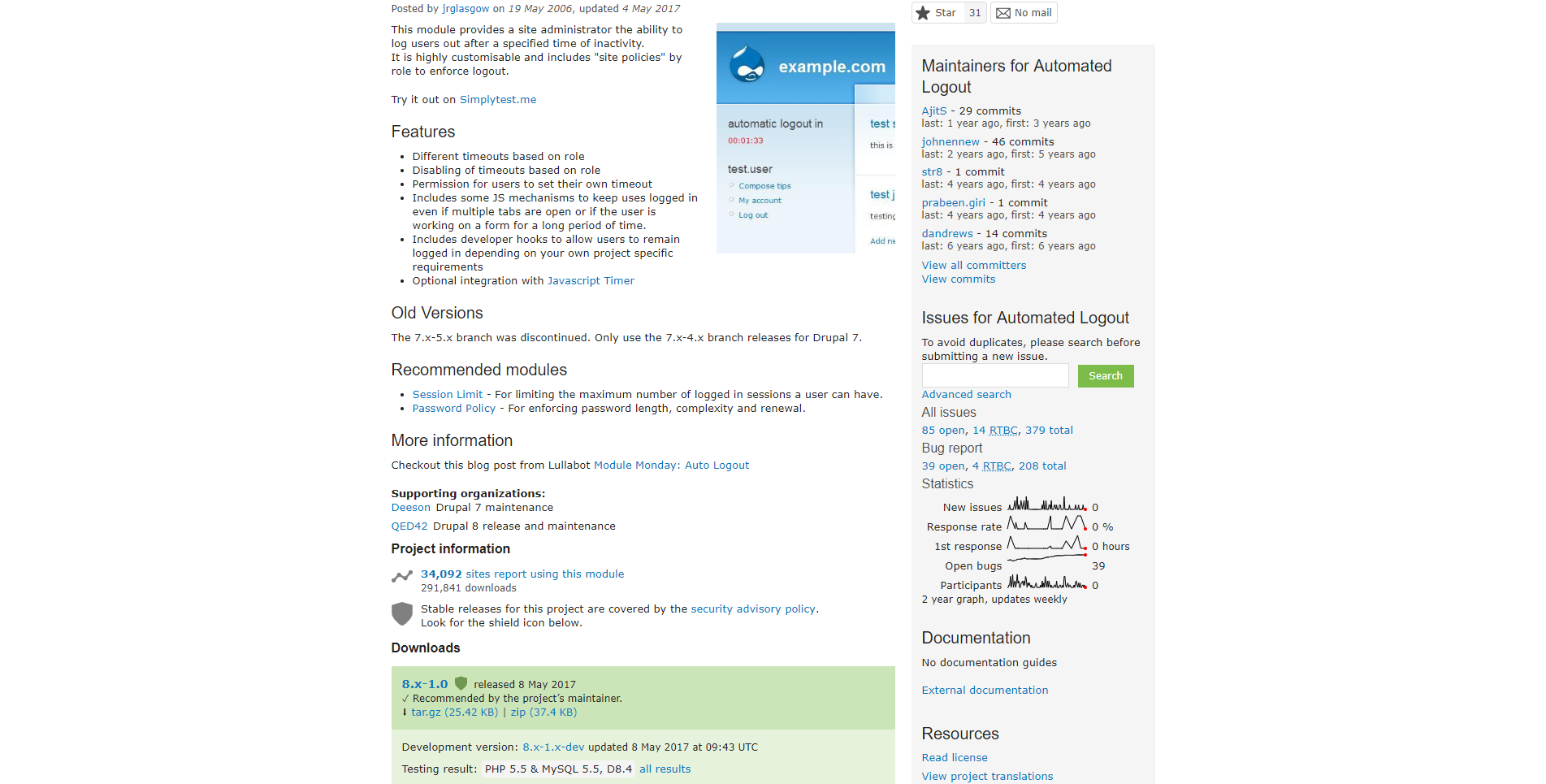 For some websites an important aspect of security is logging out users whose sessions have been idle for a while. The Drupal Automatic Logout Module enables Drupal website administrators to configure timeout periods for users, based on a variety of parameters, such as on their Drupal role, after which Drupal automatically logs the user out of their Drupal session. This module is one of hundreds of Drupal user and role management modules that implement countless focused features for Drupal websites.