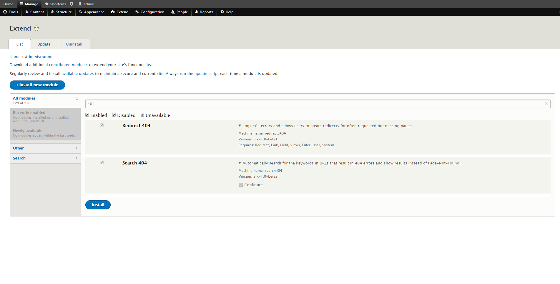 Search404 Module Installation
